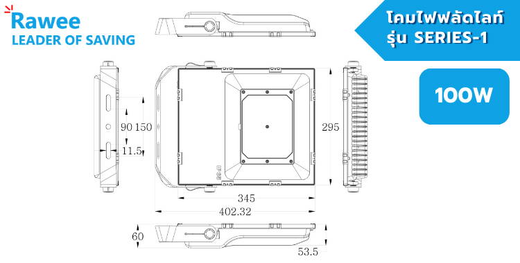โคมฟลัดไลท์ LED RAWEE LIGHTING SERIES-1 100W