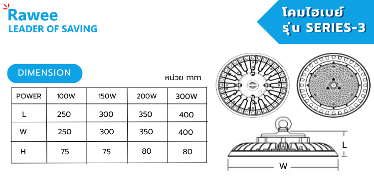 โคมไฮเบย์ LED RAWEE LIGHTING SERIES-3 150W