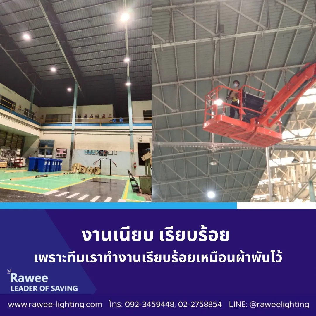 หลังจากได้รับใบสั่งซื้อจากลูกค้าแล้ว ทีมติดตั้งโคมไฟของเราก็จะวางแผนงานติดตั้ง โคมไฟ หลอดไฟ LED ให้กับลูกค้าโดยยึดหลักความปลอดภัย 100% เป็นที่ตั้ง และวิธีการติดตั้งก็จะเป็นไปตามมาตรฐานทางไฟฟ้าหรือข้อกำหนดที่ลูกค้าต้องการ ทีมงานของเราได้รับการอบรมและรับรองมาตรฐานช่างไฟฟ้าภายในตามมาตรฐานฝีมือแรงงานแห่งชาติ ของกรมแรงงาน และมีการผ่านการอบรมการทำงานบนที่สูง รวมถึงการขับรถบูมลิฟท์เพื่อเปลี่ยน หรือติดตั้งโคมไฟ LED ไฮเบย์บนที่สูงอีกด้วย