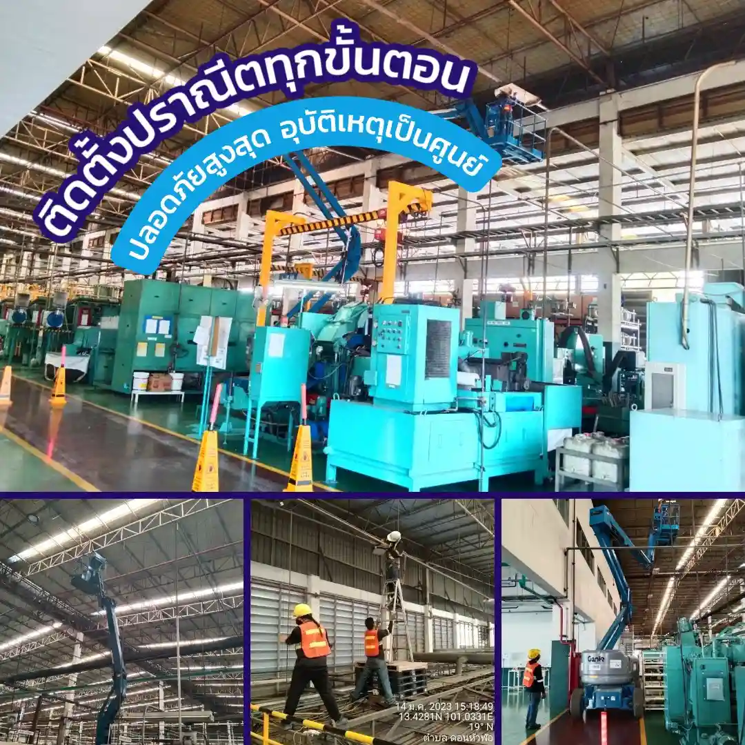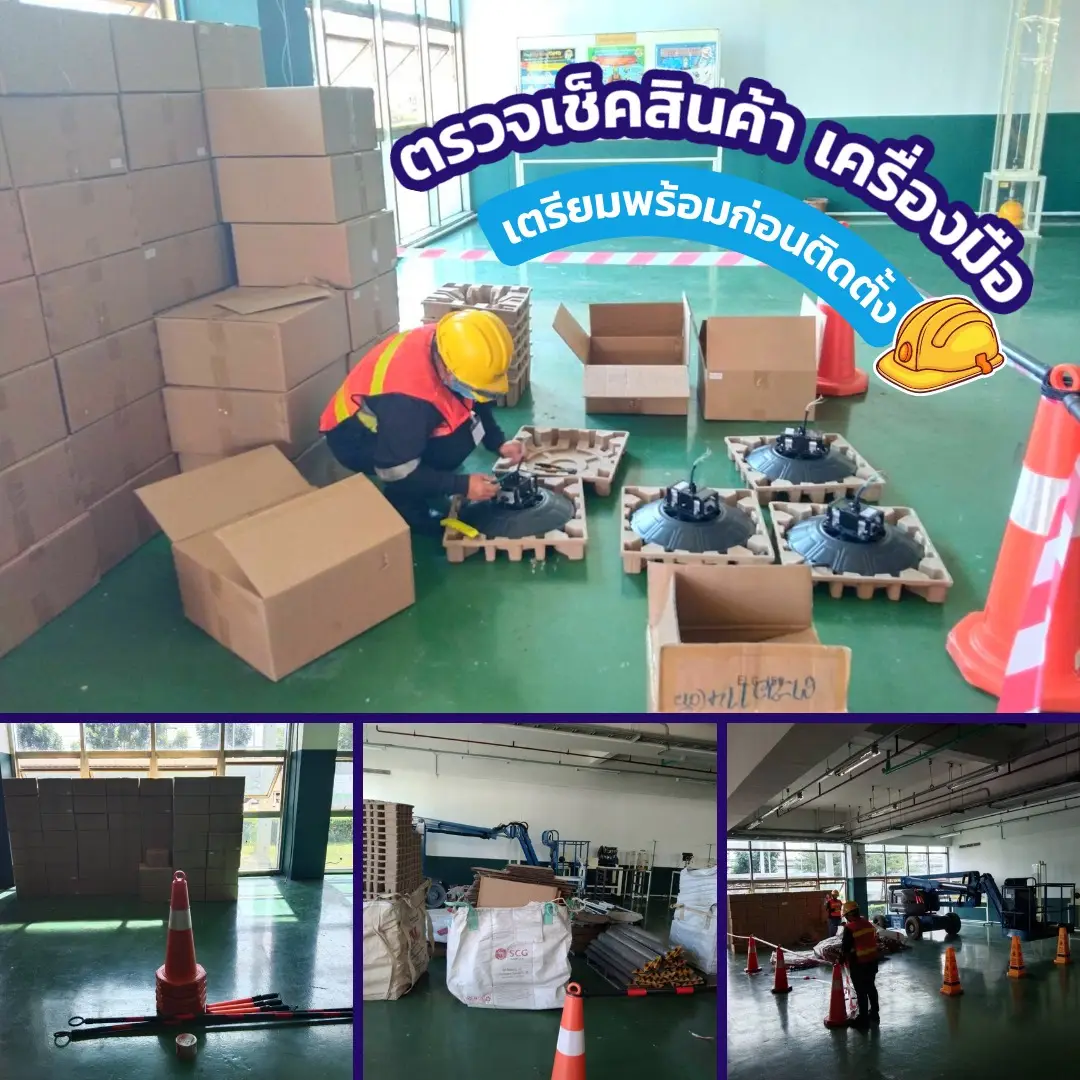 หลังจากได้รับใบสั่งซื้อจากลูกค้าแล้ว ทีมติดตั้งโคมไฟของเราก็จะวางแผนงานติดตั้ง โคมไฟ หลอดไฟ LED ให้กับลูกค้าโดยยึดหลักความปลอดภัย 100% เป็นที่ตั้ง และวิธีการติดตั้งก็จะเป็นไปตามมาตรฐานทางไฟฟ้าหรือข้อกำหนดที่ลูกค้าต้องการ ทีมงานของเราได้รับการอบรมและรับรองมาตรฐานช่างไฟฟ้าภายในตามมาตรฐานฝีมือแรงงานแห่งชาติ ของกรมแรงงาน และมีการผ่านการอบรมการทำงานบนที่สูง รวมถึงการขับรถบูมลิฟท์เพื่อเปลี่ยน หรือติดตั้งโคมไฟ LED ไฮเบย์บนที่สูงอีกด้วย